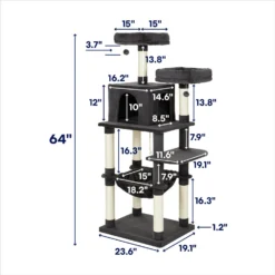 Frisco 64-in Cat Tree With Hammock, Condo, 2 Top Perches With Bed