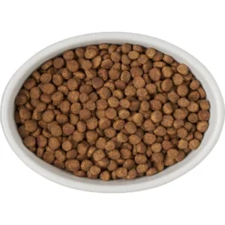 - Oval, white ceramic pet bowl with a cute “meow” graphic on the side.