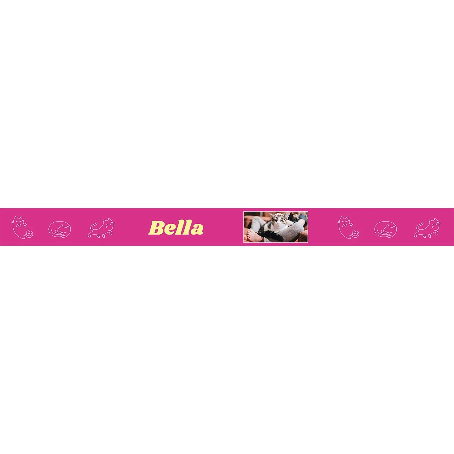 - White ceramic pet bowl with a cute, kitty-themed design.
